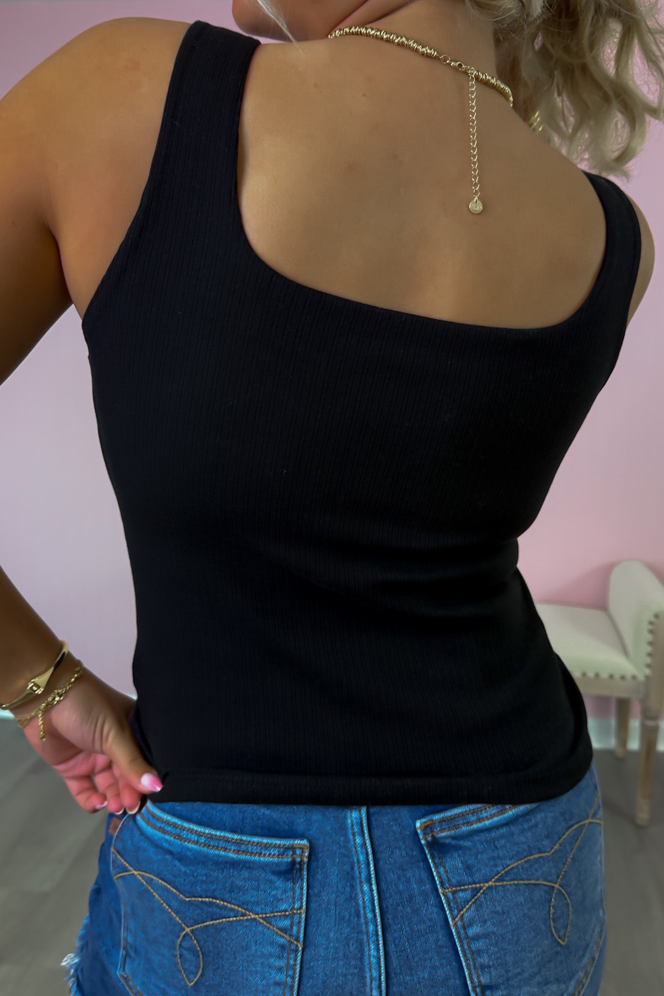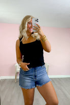Ribbed Built In Bra Tank- Black
