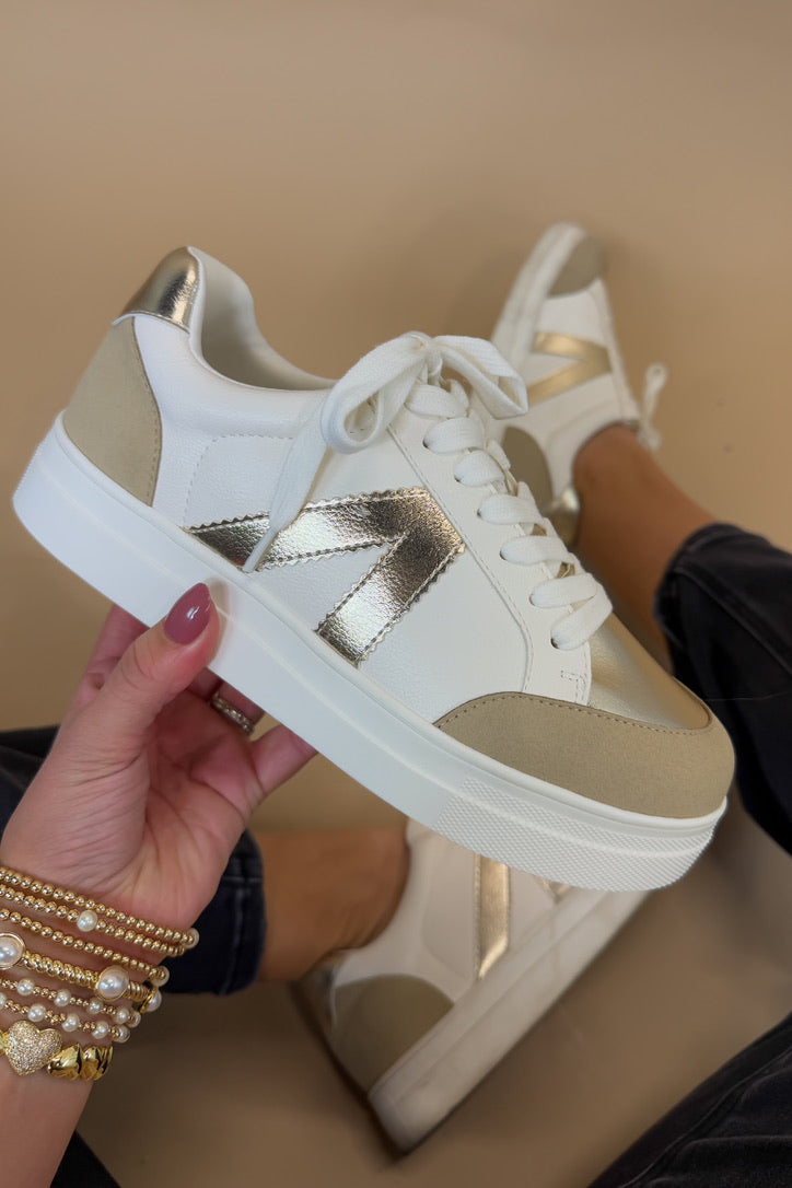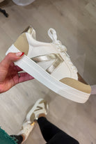- Step your sneaker game with The Astra White Sneaker! Designed with a neutral grey and white color scheme, these sneakers are not only stylish but also comfortable. The added platform gives you a boost while providing all-day support. Perfect for any casual outfit.