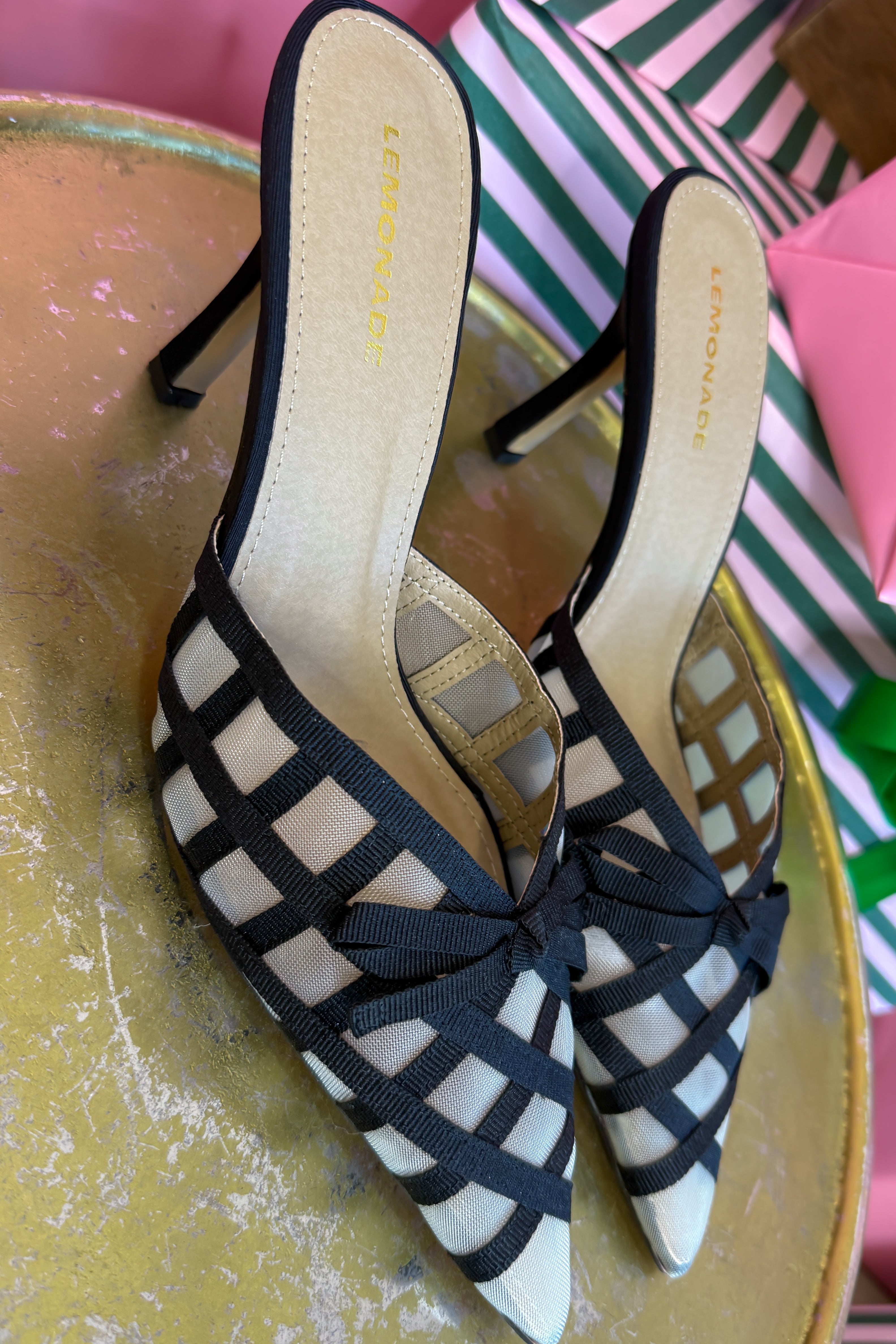 - Sophisticated and effortlessly chic, The Estelle Heels are the statement shoes your wardrobe has been waiting for. Designed with a sheer mesh body, crisscross ribbon detail, and pointed toe, they bring modern elegance to any outfit.