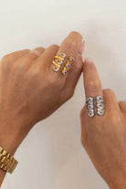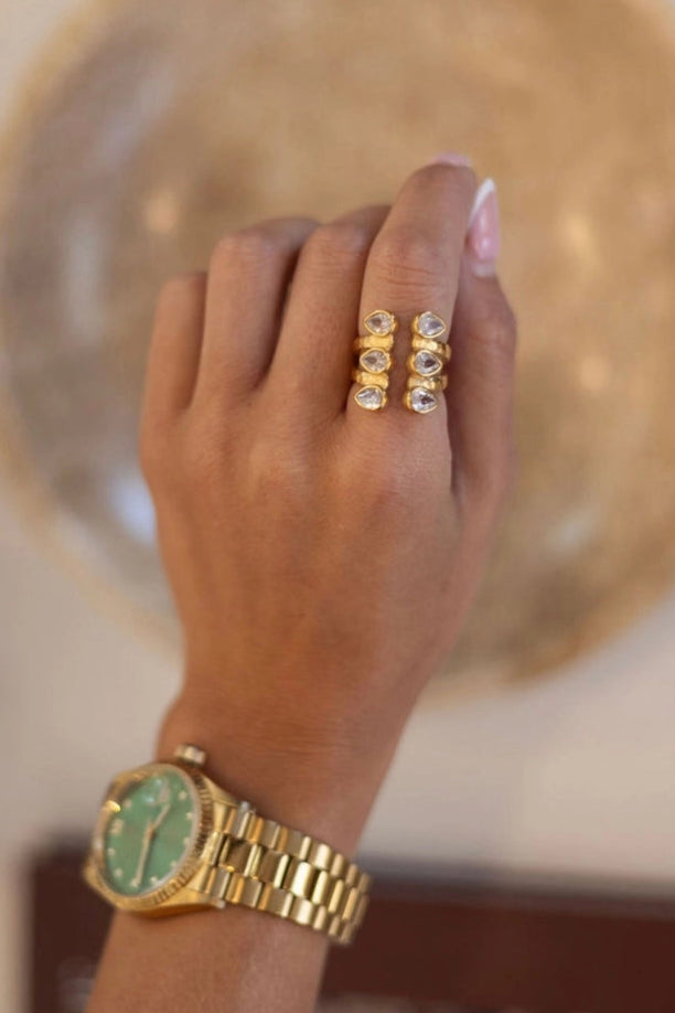 - Waterproof, tarnish-free, and fully adjustable, it’s designed to move with you—through morning meetings, beach days, and beyond. Stack it or let it shine solo; either way, this ring brings the statement. Covered by our lifetime warranty, it’s the forever piece your jewelry box was missing.