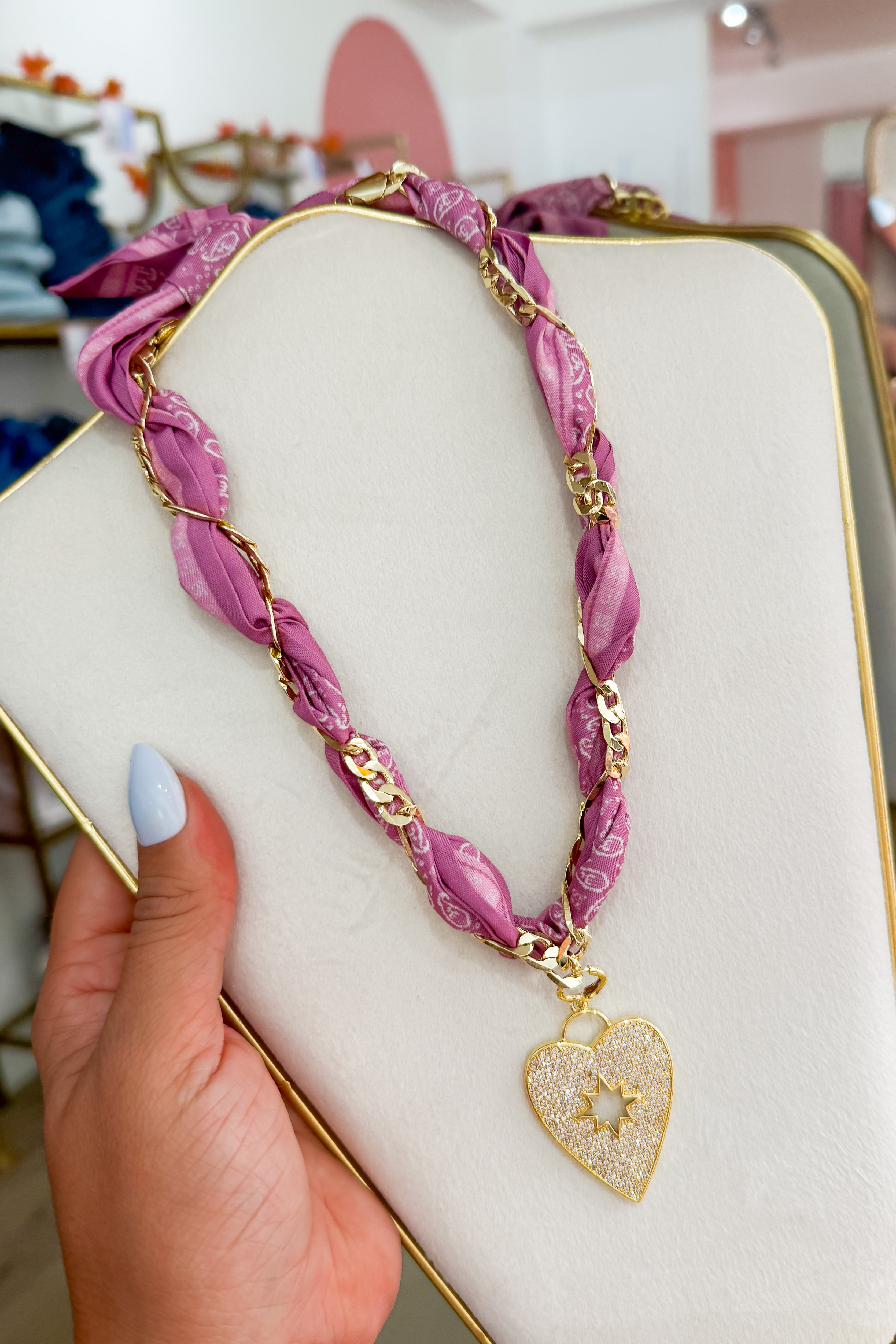 • Scarf Necklace with a gold chain and a gorgeous sparkly heart