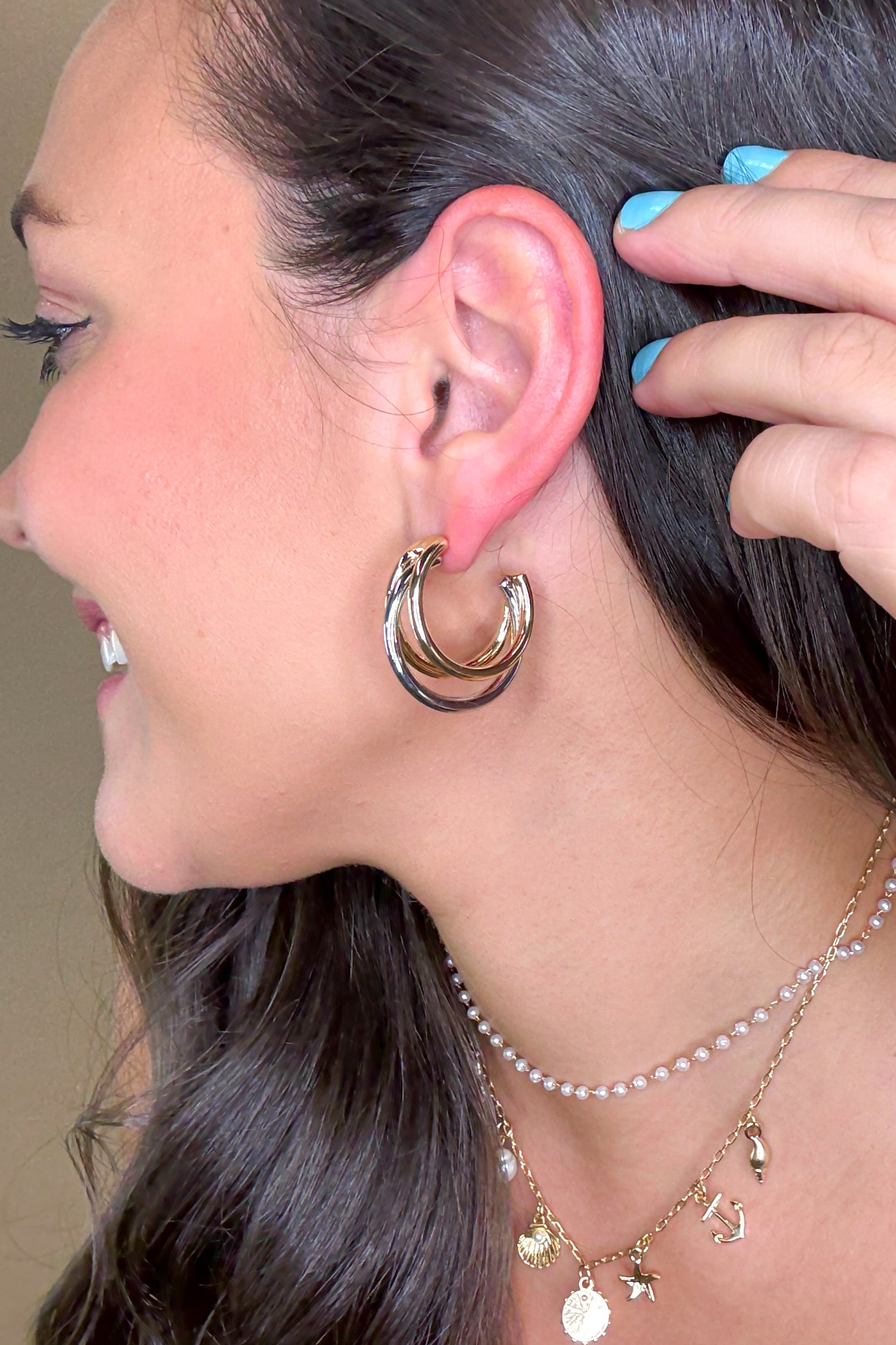 - Three line two tone hoops. Width 1.25".
