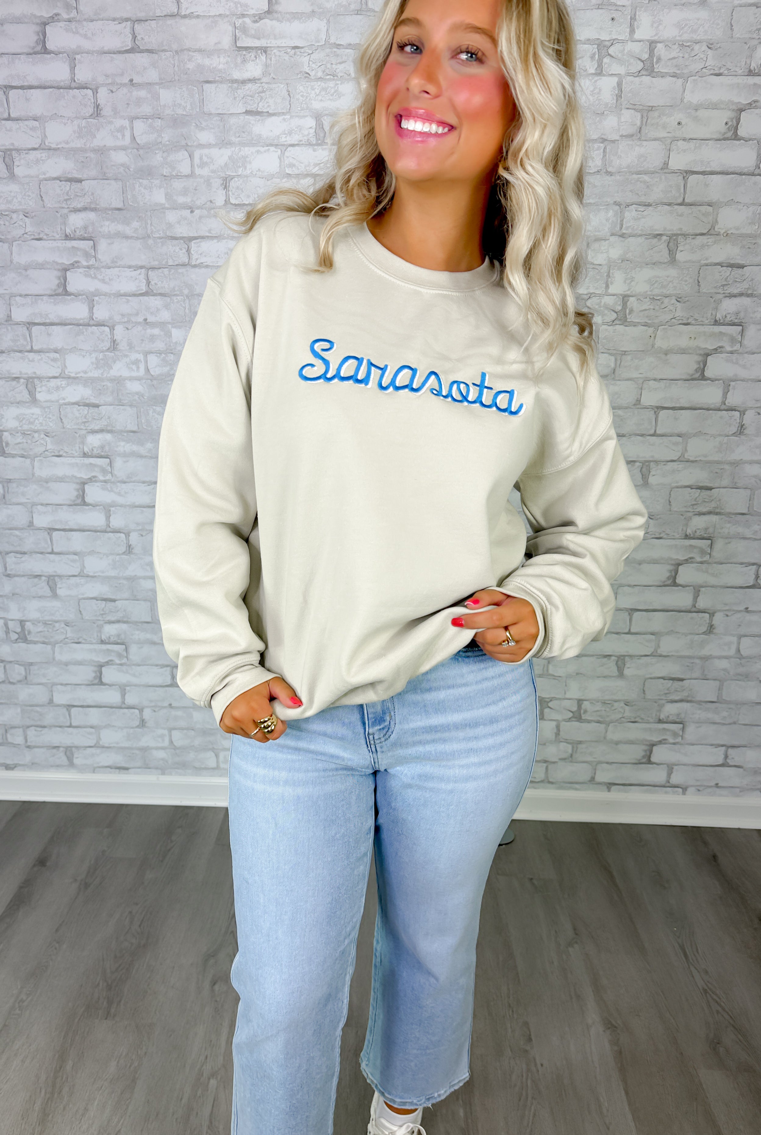 Sarasota Embroidered Crewneck- Sand