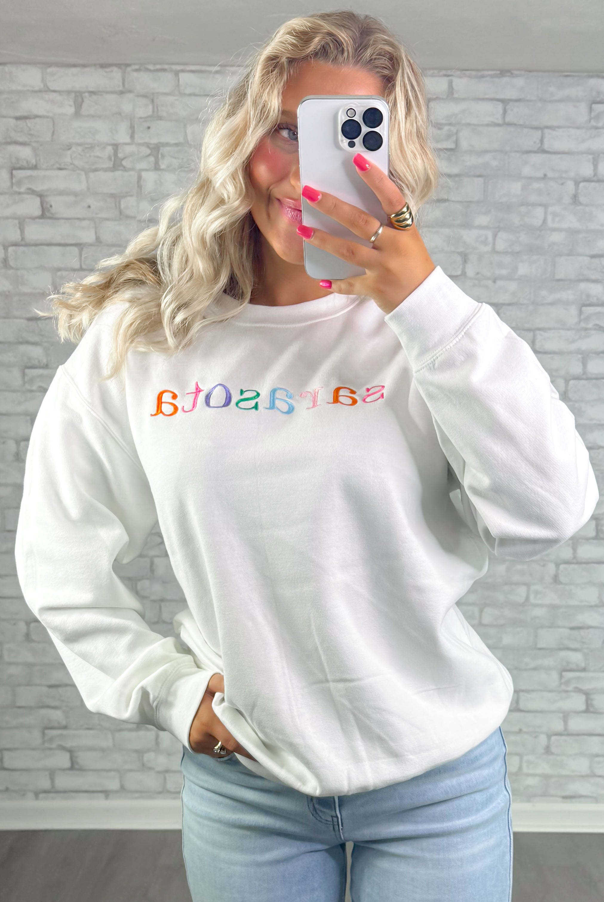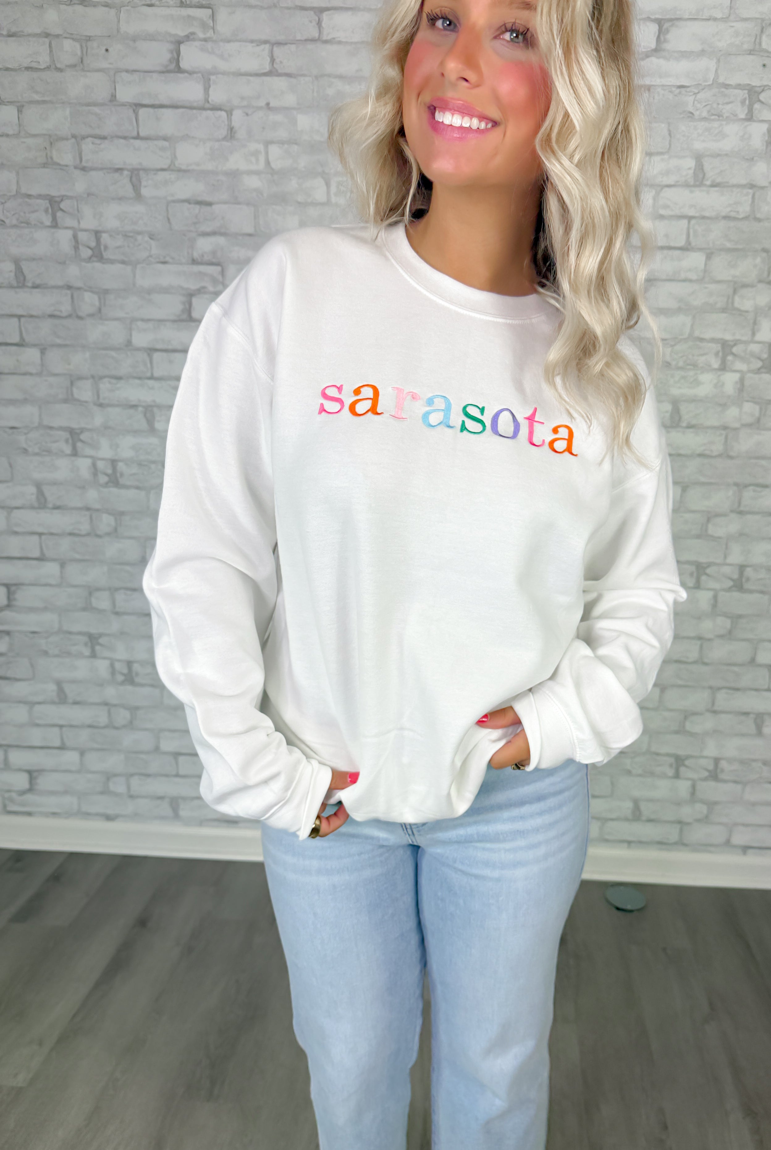 Sarasota Embroidered Crewneck- White