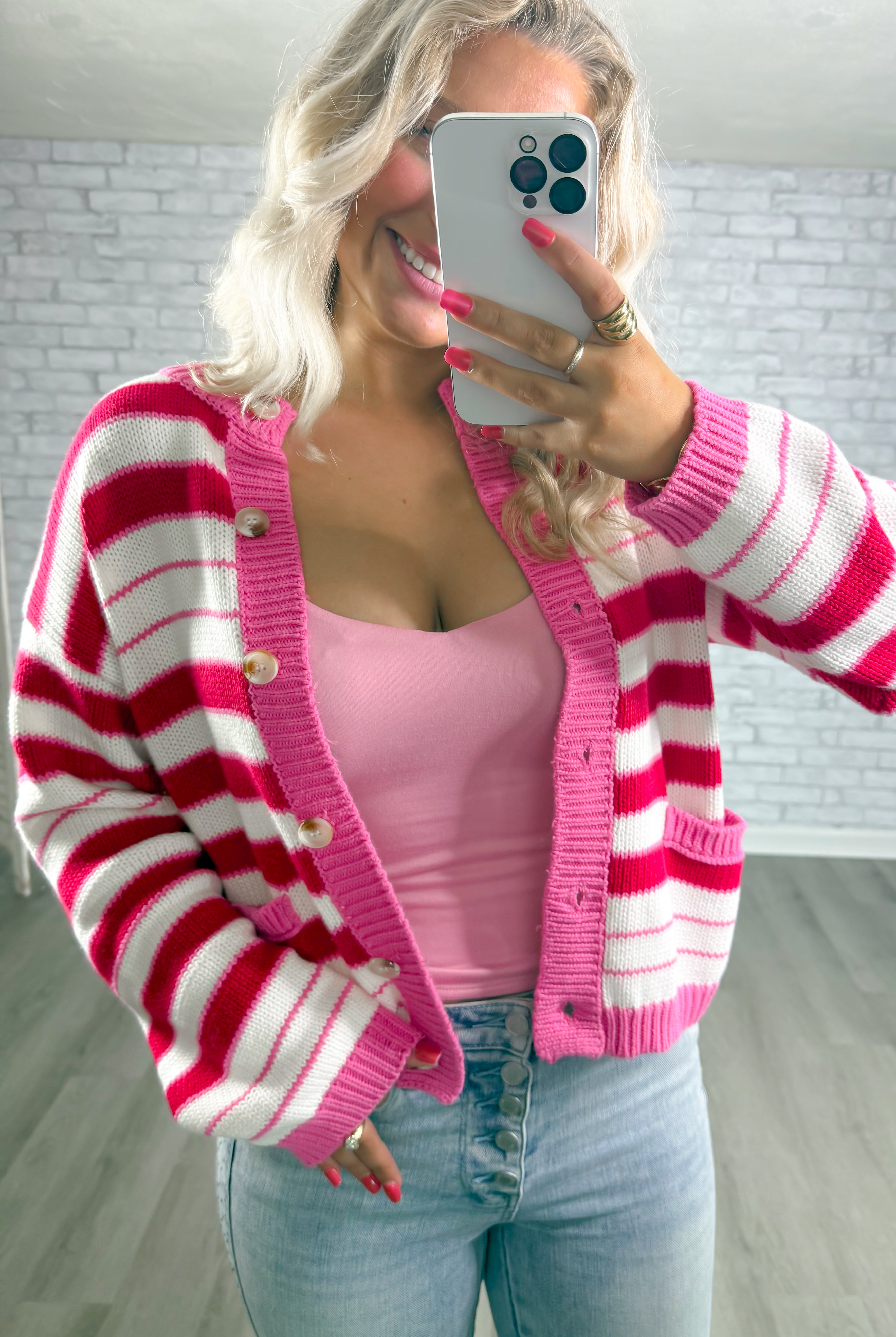 Raspberry Rush Striped Cardigan