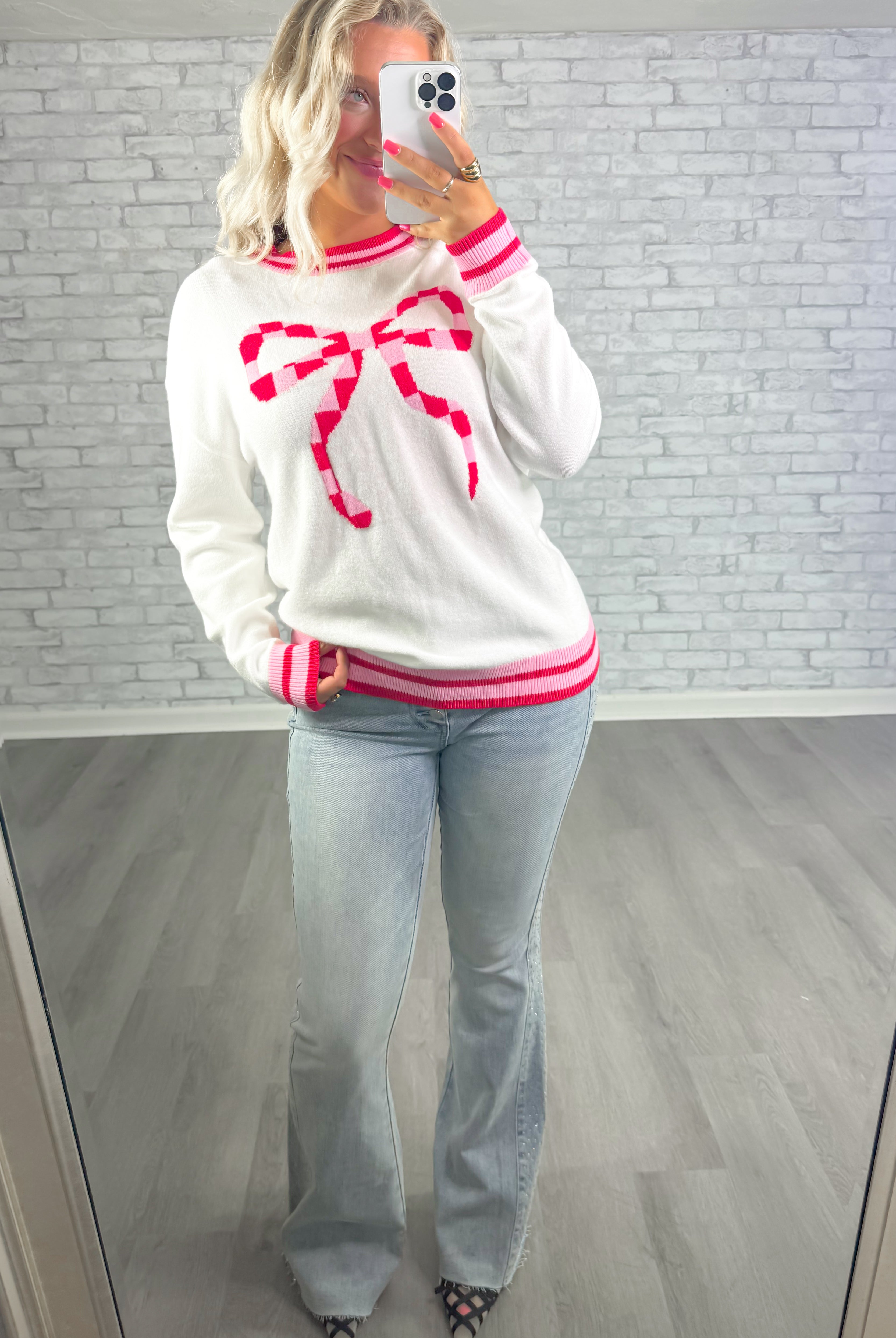 Ribbon Reveal Pink Sweater